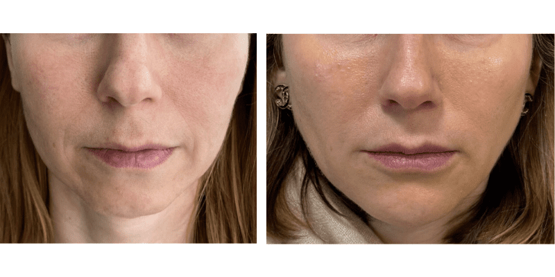 In the example above, you can see how subtle improvements in skin quality and volume restore balance and softness to the face, all without the “done” look often associated with traditional fillers.